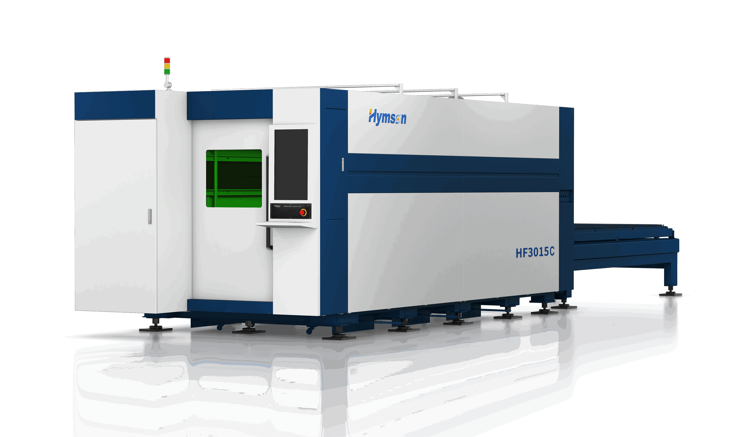 - Cabeça de laser Hymson — Integra recursos anticolisão, foco automático e monitoramento em tempo real para maior durabilidade e precisão.